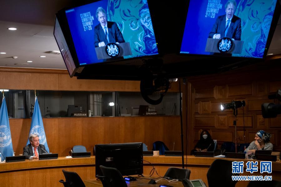 12月12日,在位于紐約的聯(lián)合國(guó)總部,聯(lián)合國(guó)秘書(shū)長(zhǎng)古特雷斯(左)出席氣候雄心峰會(huì)。聯(lián)合國(guó)秘書(shū)長(zhǎng)古特雷斯12日在氣候雄心峰會(huì)上致辭,呼吁全球進(jìn)入“氣候緊急狀態(tài)”。新華社發(fā)(聯(lián)合國(guó)供圖)