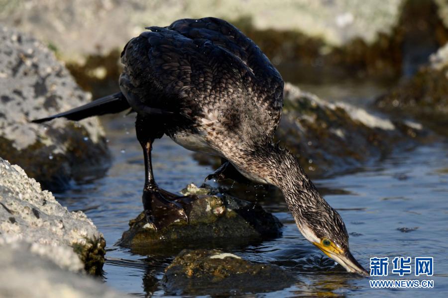 12月20日,一只鸕鶿在科威特杰赫拉省海邊覓食。新華社發(fā)(加齊攝)