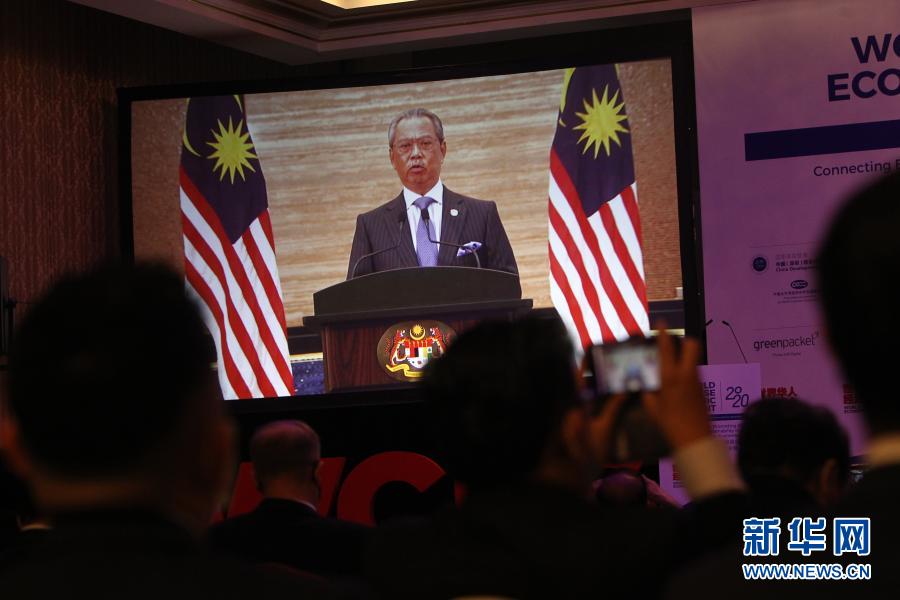 12月21日,在馬來(lái)西亞吉隆坡舉行的世界華人經(jīng)濟(jì)峰會(huì)上,大屏幕播放馬來(lái)西亞總理穆希丁的視頻講話。新華社發(fā)