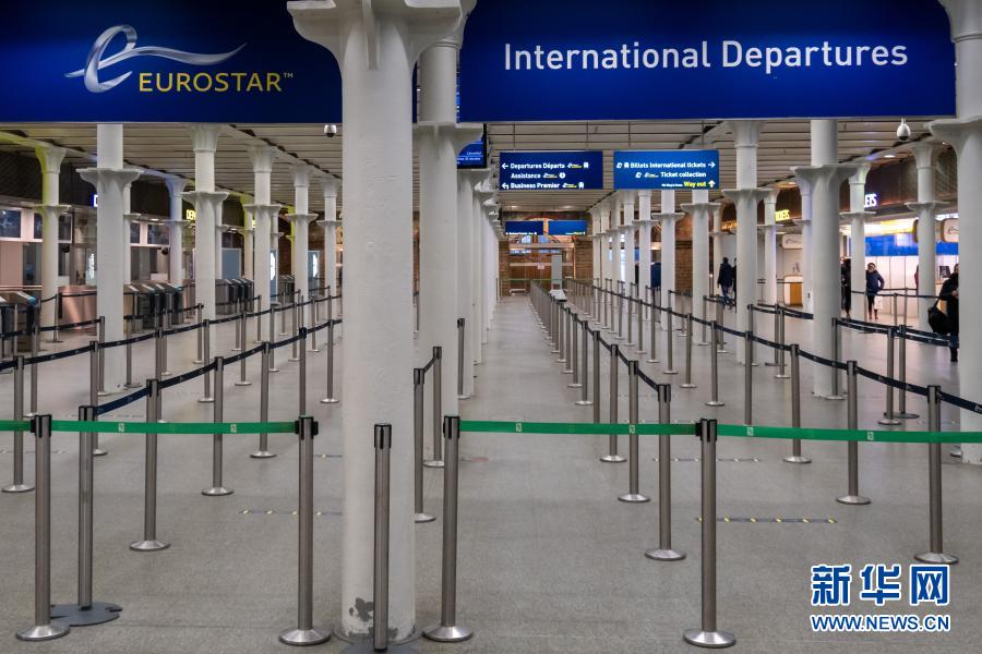 這是12月21日在英國(guó)倫敦圣潘克拉斯火車站拍攝的空蕩蕩的“歐洲之星”國(guó)際出發(fā)大廳。新華社發(fā)(蒂姆·愛爾蘭攝)