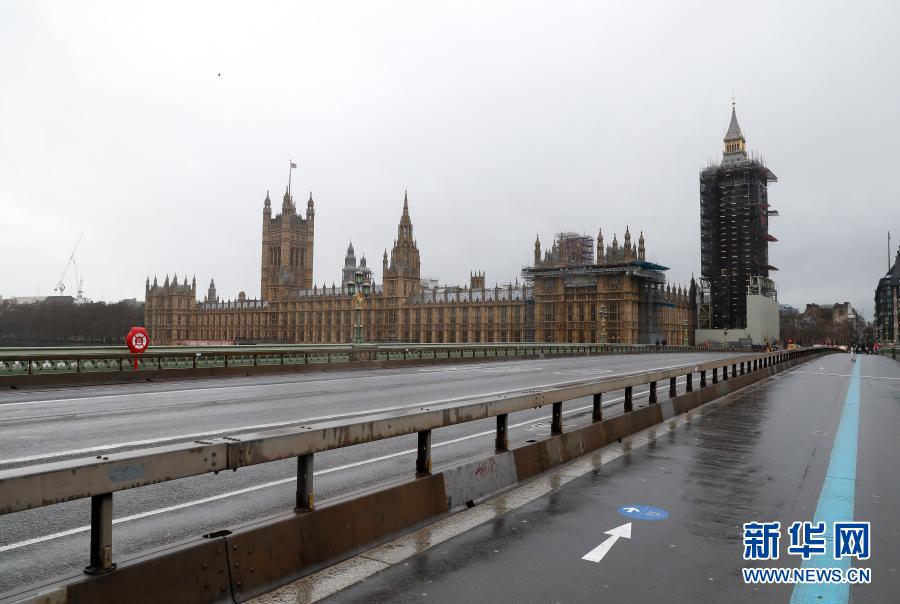 12月21日,英國倫敦議會大廈前的威斯敏斯特橋行人寥寥。新華社記者 韓巖 攝