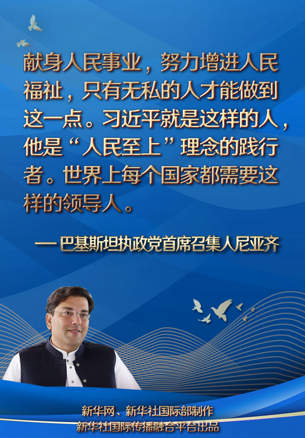 新華社伊斯蘭堡3月23日電(記者李浩 劉天 蔣超)“習(xí)近平總書(shū)記‘我將無(wú)我,不負(fù)人民’這句話(huà)讓我印象深刻?!卑突固箞?zhí)政黨正義運(yùn)動(dòng)黨首席召集人賽義夫拉·汗·尼亞齊日前在伊斯蘭堡接受新華社記者專(zhuān)訪(fǎng)時(shí)說(shuō):“他這句話(huà)的意思是他將忘我地為增進(jìn)中國(guó)人民福祉而工作?!?/p>
