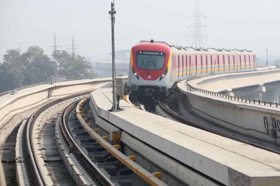 這是2020年10月24日在巴基斯坦拉合爾拍攝的調(diào)試中的中巴經(jīng)濟(jì)走廊拉合爾軌道交通橙線(xiàn)項(xiàng)目。(新華社記者 劉天 攝)