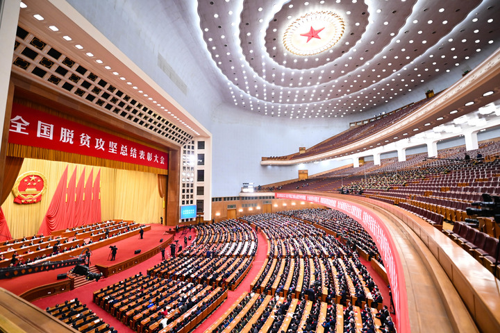 2021年2月25日,全國脫貧攻堅(jiān)總結(jié)表彰大會在北京人民大會堂隆重舉行。新華社記者 李響 攝