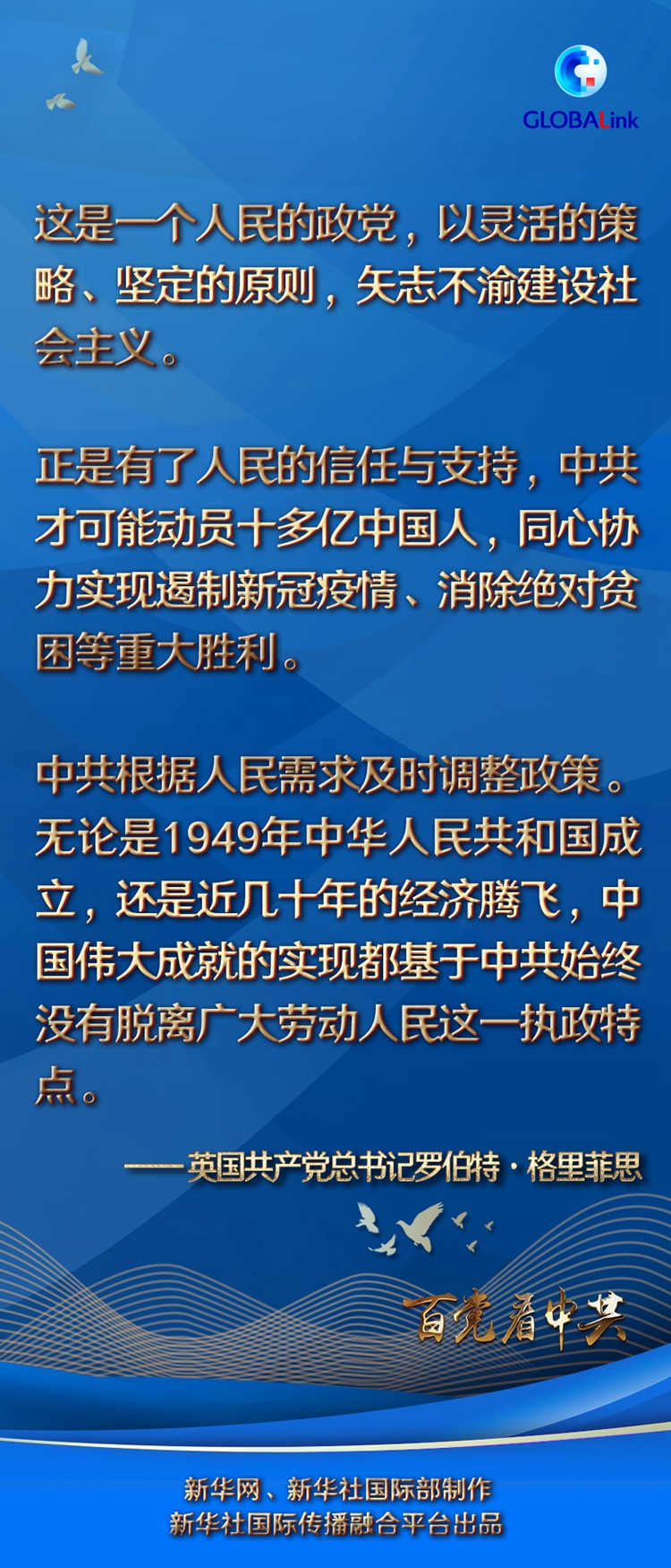 “這是貫穿中共歷史的一個核心原則,因為中共是一個來自人民、由人民創(chuàng)建、始終貼近人民的政黨。”格里菲思說:“中共根據(jù)人民需求及時調(diào)整政策。無論是1949年中華人民共和國成立,還是近幾十年的經(jīng)濟(jì)騰飛,中國偉大成就的實現(xiàn)都基于中共始終沒有脫離廣大勞動人民這一執(zhí)政特點?!?/p>