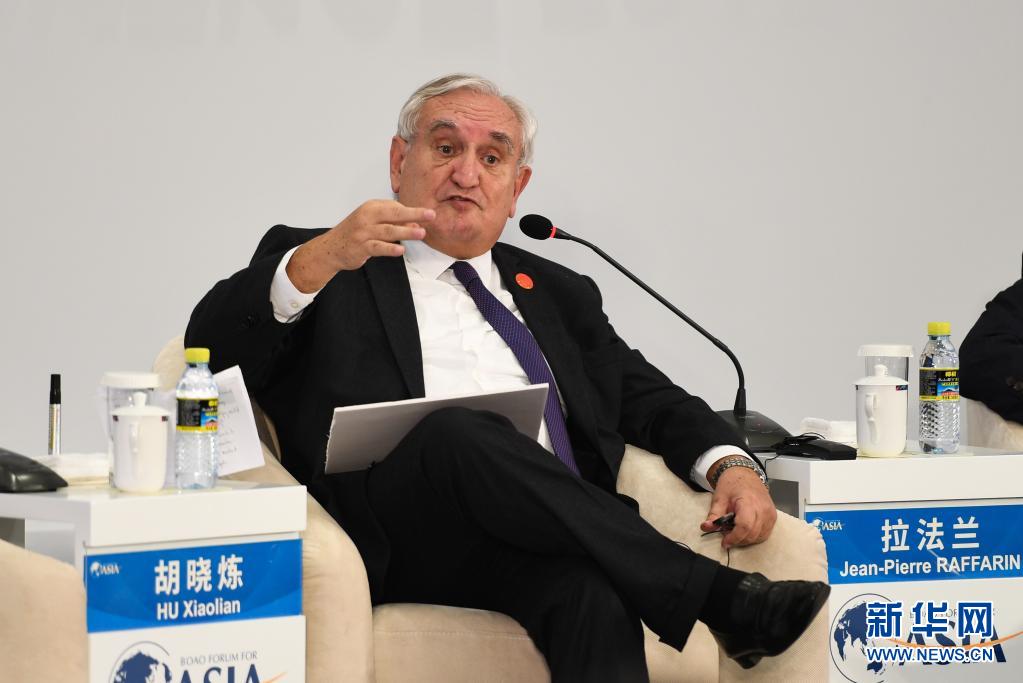 法國(guó)前總理拉法蘭在博鰲亞洲論壇2018年年會(huì)“改革開(kāi)放40年:中國(guó)與世界”電視辯論上發(fā)言(2018年4月10日攝)。新華社記者 楊冠宇 攝
