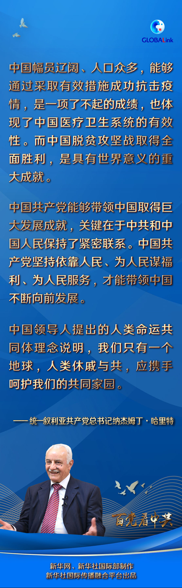 新華社大馬士革5月14日電 統(tǒng)一敘利亞共產(chǎn)黨總書(shū)記納杰姆丁·哈里特日前在敘利亞首都大馬士革接受新華社記者采訪時(shí)說(shuō),在中國(guó)共產(chǎn)黨領(lǐng)導(dǎo)下,中國(guó)取得巨大成就,發(fā)生巨大變化,其關(guān)鍵在于中國(guó)共產(chǎn)黨和中國(guó)人民保持了緊密聯(lián)系。