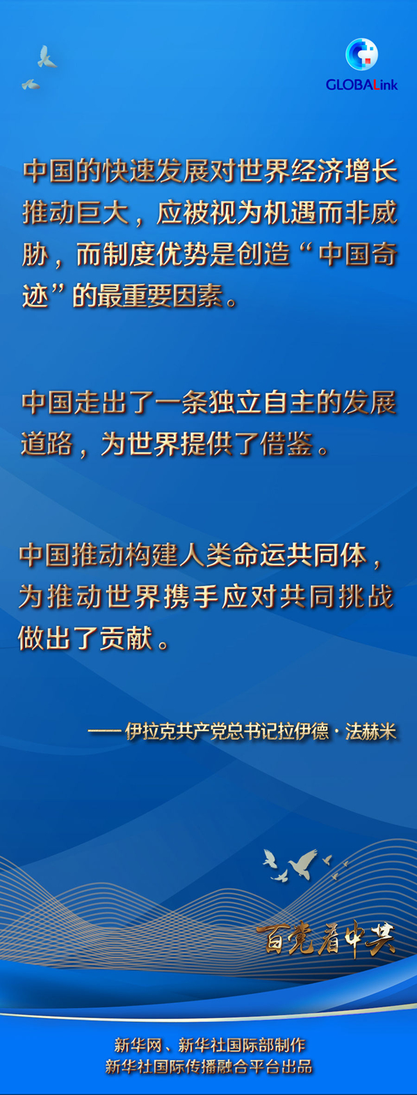 在中國共產(chǎn)黨成立100周年之際,法赫米對中共取得的偉大成就致以誠摯祝賀。他表示,在中共帶領(lǐng)下,中國在眾多領(lǐng)域?qū)崿F(xiàn)了大跨步發(fā)展。