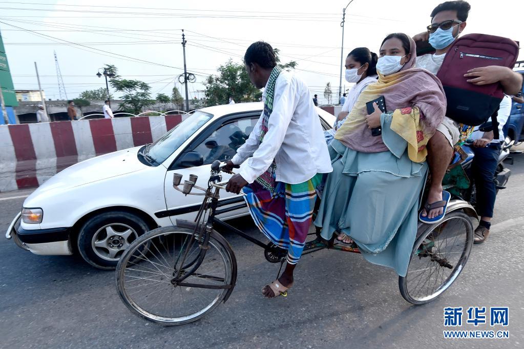 5月17日,返程人員抵達(dá)孟加拉國(guó)首都達(dá)卡后,乘坐三輪車前往城市其它地方。