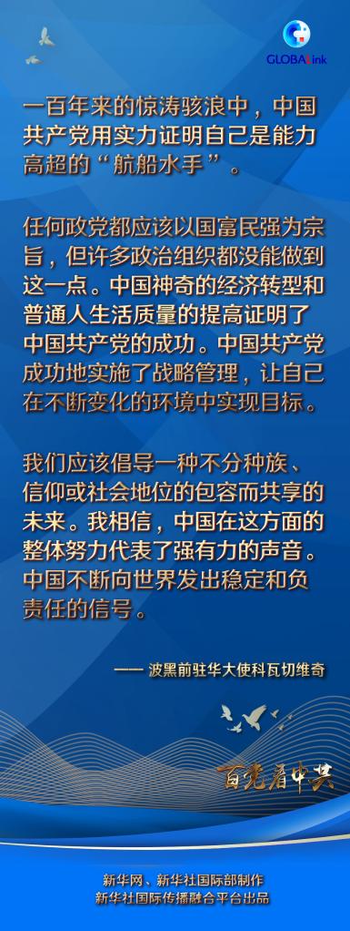 新華社薩拉熱窩5月19日電(記者張修智)“一百年來的驚濤駭浪中,中國共產(chǎn)黨用實(shí)力證明自己是能力高超的‘航船水手’?!闭劦街袊伯a(chǎn)黨的百年歷程,波黑前駐華大使科瓦切維奇日前在接受新華社記者視頻采訪時(shí)如是說。