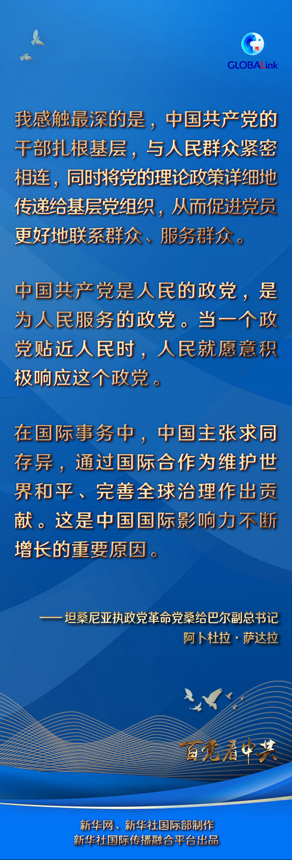 在他看來(lái),中國(guó)之所以能取得這樣的發(fā)展成就,得益于中國(guó)共產(chǎn)黨始終貼近人民、服務(wù)人民。“中國(guó)共產(chǎn)黨是人民的政黨,是為人民服務(wù)的政黨。當(dāng)一個(gè)政黨貼近人民時(shí),人民就愿意積極響應(yīng)這個(gè)政黨?!?/p>