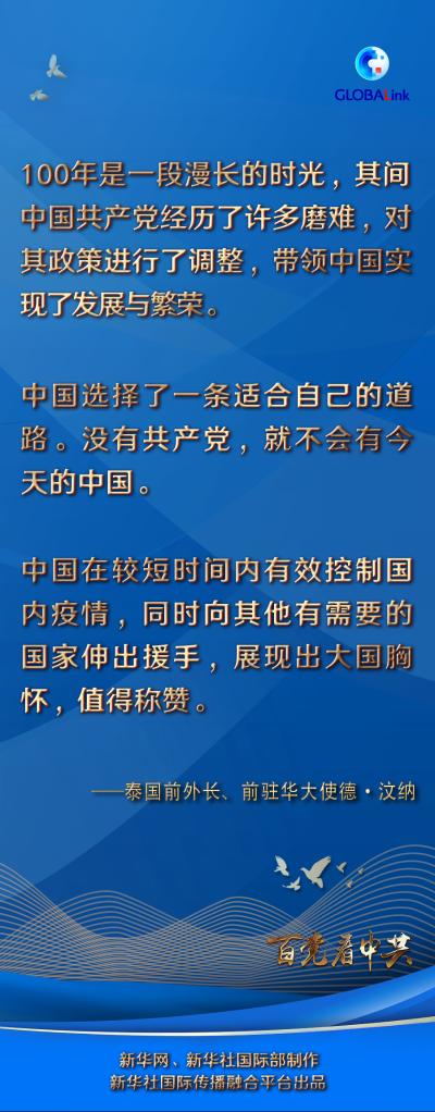 新華社曼谷5月29日電 “100年是一段漫長的時光,其間中國共產(chǎn)黨經(jīng)歷了許多磨難,對其政策進(jìn)行了調(diào)整,帶領(lǐng)中國實現(xiàn)了發(fā)展與繁榮?!碧﹪巴忾L、前駐華大使德·汶納日前在曼谷接受新華社專訪時說。