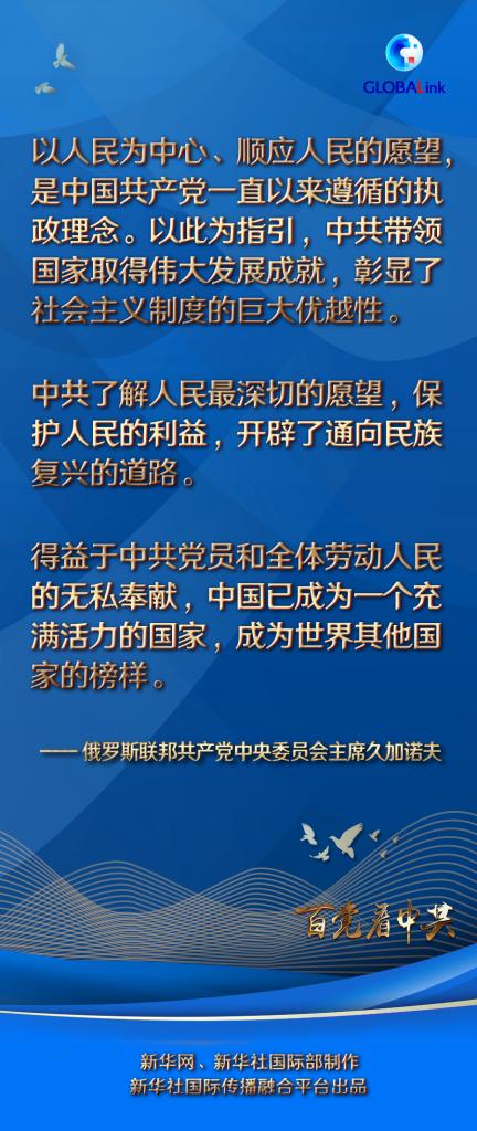 久加諾夫?qū)χ袊伯a(chǎn)黨百年華誕表示祝賀。回顧百年歷程,他表示,中共了解人民最深切的愿望,保護人民的利益,開辟了通向民族復興的道路。