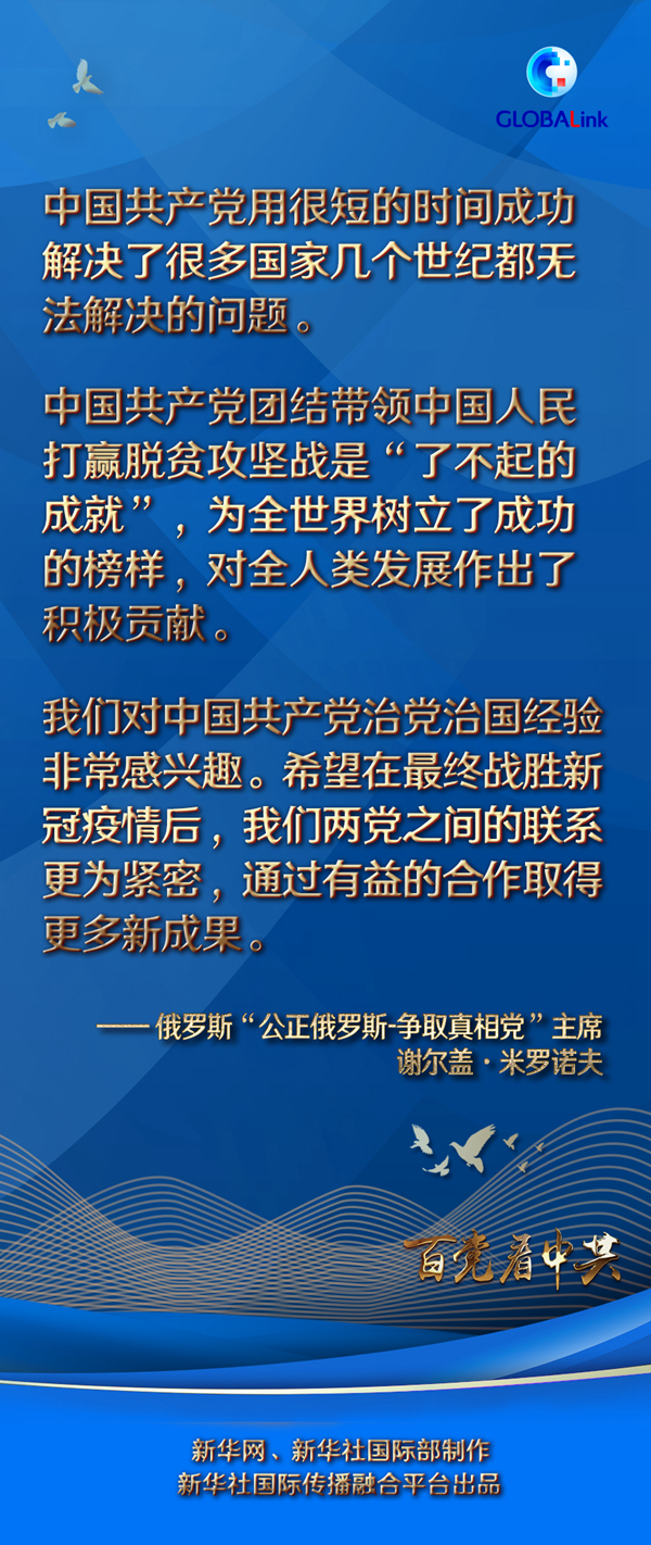 米羅諾夫在采訪中高度評價中國共產黨領導中國取得的巨大成就,他認為,中共取得成功離不開正確的目標、務實的態(tài)度和堅持不懈的努力。米羅諾夫說,每次訪華,他都能看到中國發(fā)生了新變化,這種充滿活力的變化令人贊嘆。